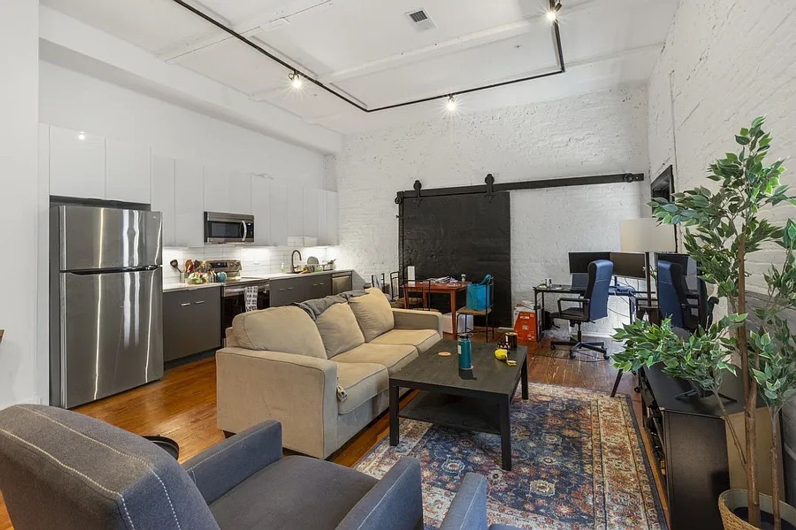 Welcome to Unit 212 at Berks Warehouse, a stylish studio apartment that blends historic industrial character with modern comfort. This thoughtfully designed space boasts high ceilings and oversized windows that fill the unit with natural light. The contemporary kitchen features stainless steel appliances and sleek finishes, perfect for cooking or entertaining. Hardwood floors throughout create a warm, inviting atmosphere, while the in-unit washer and dryer make everyday living effortless. Residents enjoy secure building access, a fitness center, and a rooftop deck with breathtaking city views. Located just steps from Berks El Station and the vibrant dining, shopping, and nightlife, Unit 212 offers the ideal combination of style, convenience, and city living.