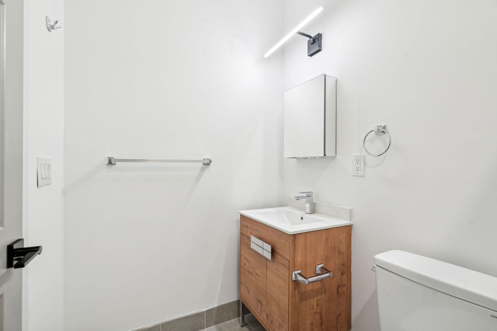 Bedroom is generously sized and filled with natural light, offering comfort and tranquility. The sleek, centrally located bathroom is stylishly designed with modern fixtures and finishes. Enjoy urban living in this brand-new construction, just steps away from public transit, local dining, and trendy shops.