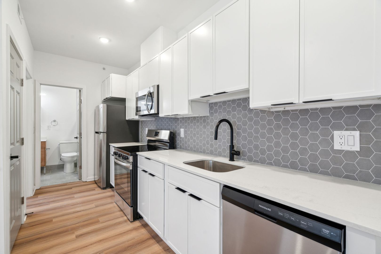 Welcome to Unit 404 at 2039 North Front Street, a beautifully designed JUNIOR-bedroom, 1-bathroom unit offering contemporary living in Fishtown. This one-level residence features an open-concept layout with a modern kitchen, complete with high-end finishes and stainless steel appliances. The spacious living area is perfect for relaxing or entertaining guests. All units have access to a shared outdoor space and bike rack.