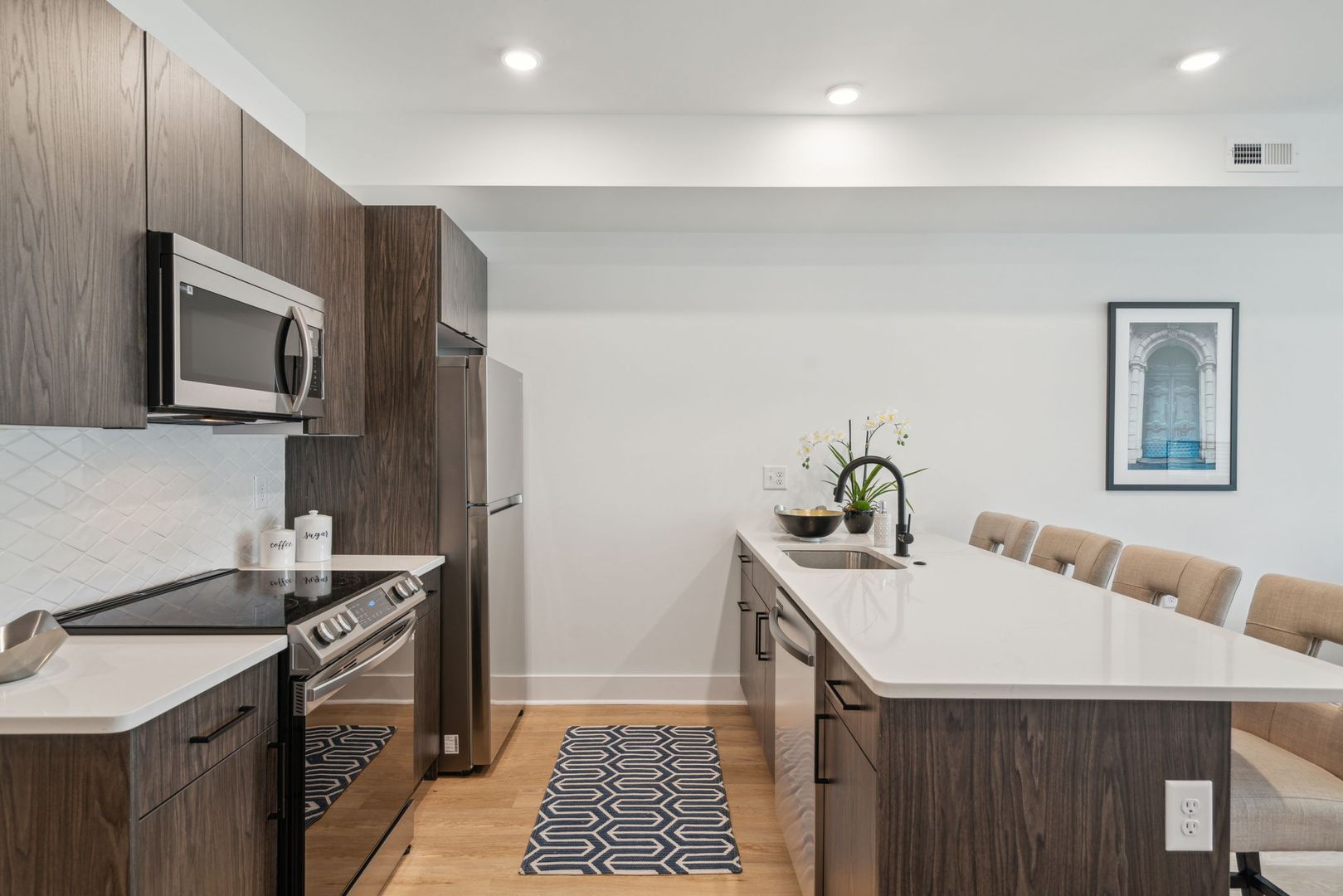 Brand New Luxury Apartments at 1419 Grange Ave featuring 36 rental units in a four-story building. With 21 two-bedroom, two-bathroom units and 15 spacious one-bedroom, one-bathroom units. Each have walk-in closets. Tenants will have access to the side yards on either side of the building and a seven-foot rear yard as well. This spacious 2 bed 2 bath unit features a view of Grange Ave with a spacious living room. This unit has a walk-in closet for both bedrooms. This beautiful new development features 47 parking spaces total with 34 garage parking and 13 gated parking in the rear on the first floor and bicycle parking, as well. Inside the building lobby tenants will have access to the elevator, mailroom, and key fob and keyless entry throughout the building. These brand new Grange Ave condos are within walking distance to lots of restaurants and close proximity to Eisenstein and Temple Hospital. Set up your tour today!