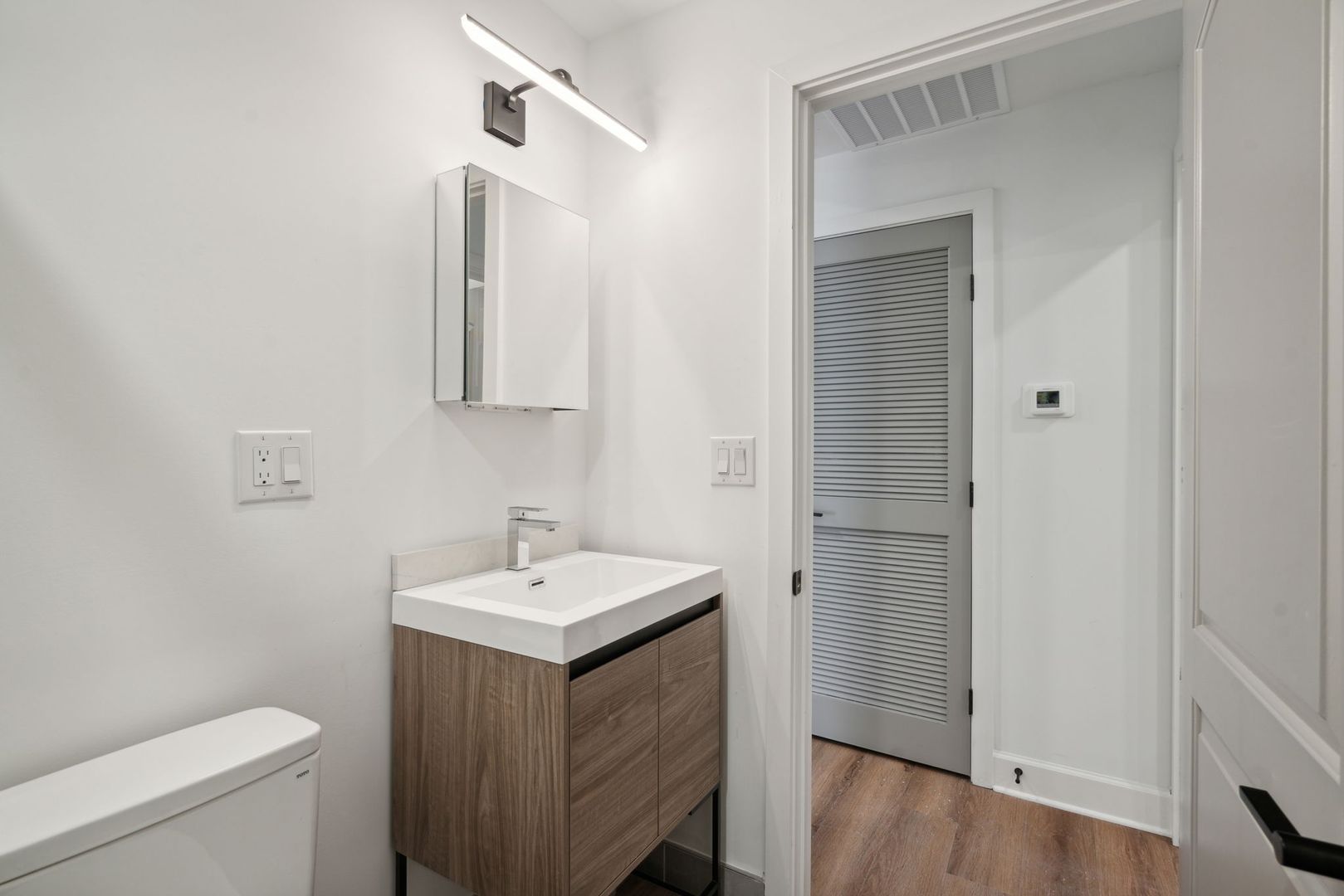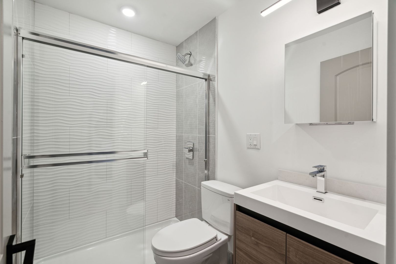 Both bedrooms are generously sized and filled with natural light, offering comfort and tranquility. The sleek, centrally located bathroom is stylishly designed with modern fixtures and finishes. Enjoy urban living in this brand-new construction, just steps away from public transit, local dining, and trendy shops.