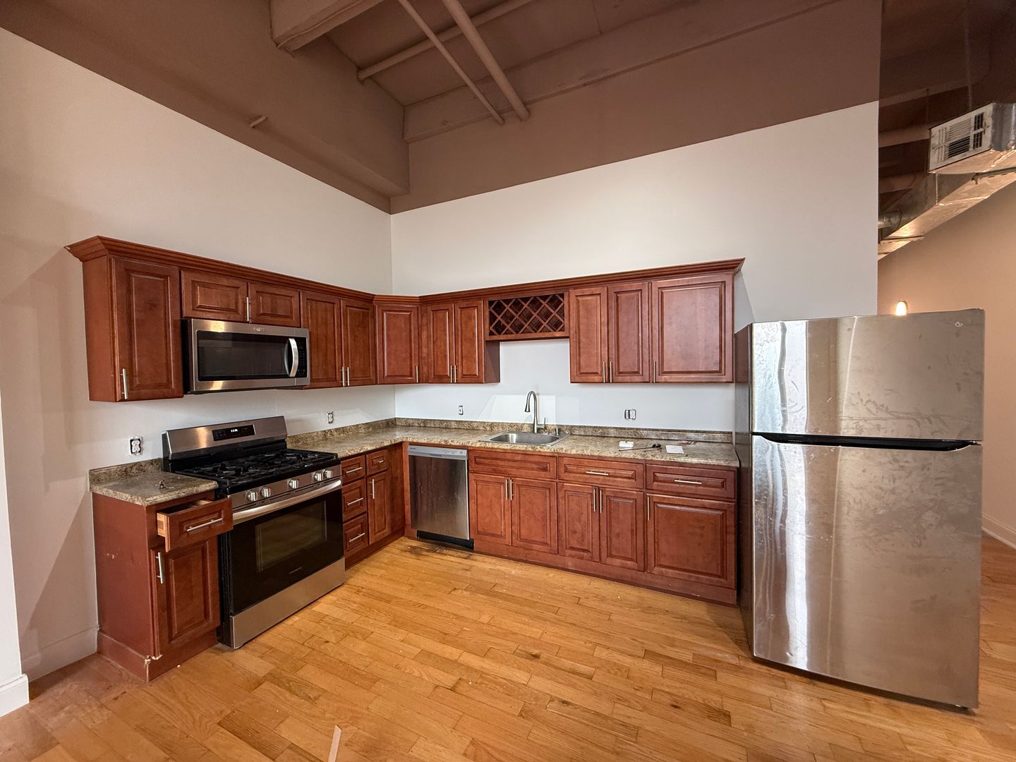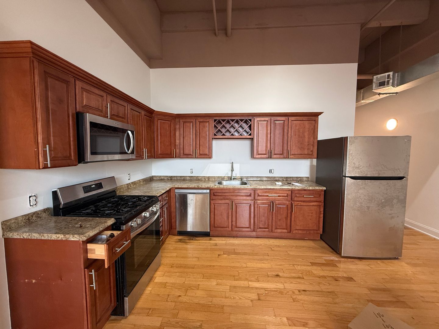 Welcome to Unit 120 at Frame Factory Lofts, a stylish and spacious two-bedroom, one-bath apartment that blends industrial character with modern comfort. This thoughtfully designed unit features an open-concept layout with soaring ceilings, exposed beams, and large windows that fill the space with natural light. The contemporary kitchen is equipped with sleek stainless steel appliances, modern cabinetry, and ample counter space, making it perfect for both everyday living and entertaining. Both bedrooms offer comfortable layouts with great closet space, while the full bathroom features clean, modern finishes. Additional highlights include hardwood flooring, central air and heating, and the convenience of in-unit washer and dryer. Located in Philadelphia’s growing Port Richmond/Harrowgate area with easy access to I-95, Fishtown, and Northern Liberties, Unit 120 offers the perfect mix of style, character, and convenience—schedule tour now to make this your new home!